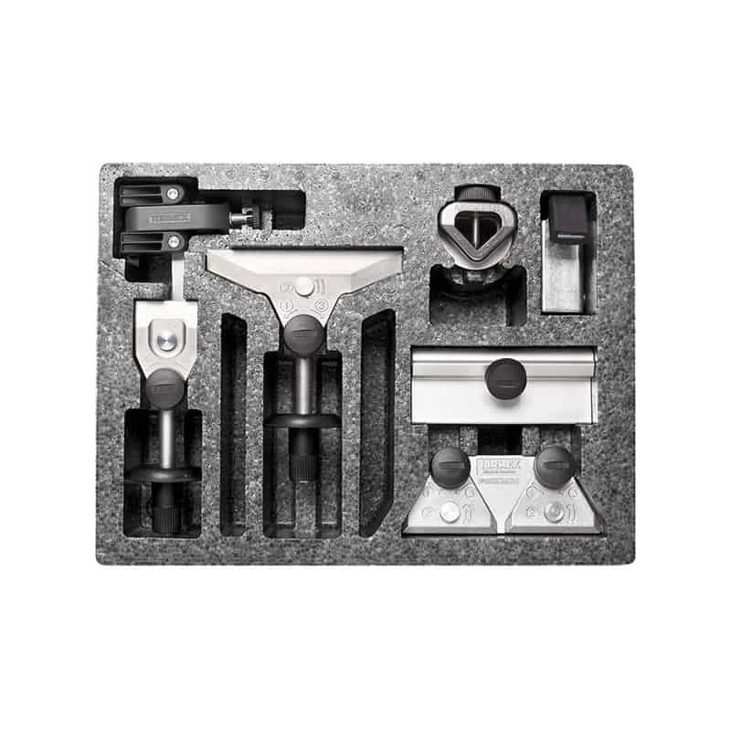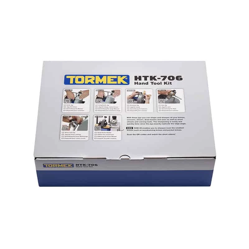 Ce kit HTK706 inclut tous les dispositifs dont vous avez besoin pour affûter vos couteaux, ciseaux, planes et haches, ainsi que les burins courts et les outils de découpe.