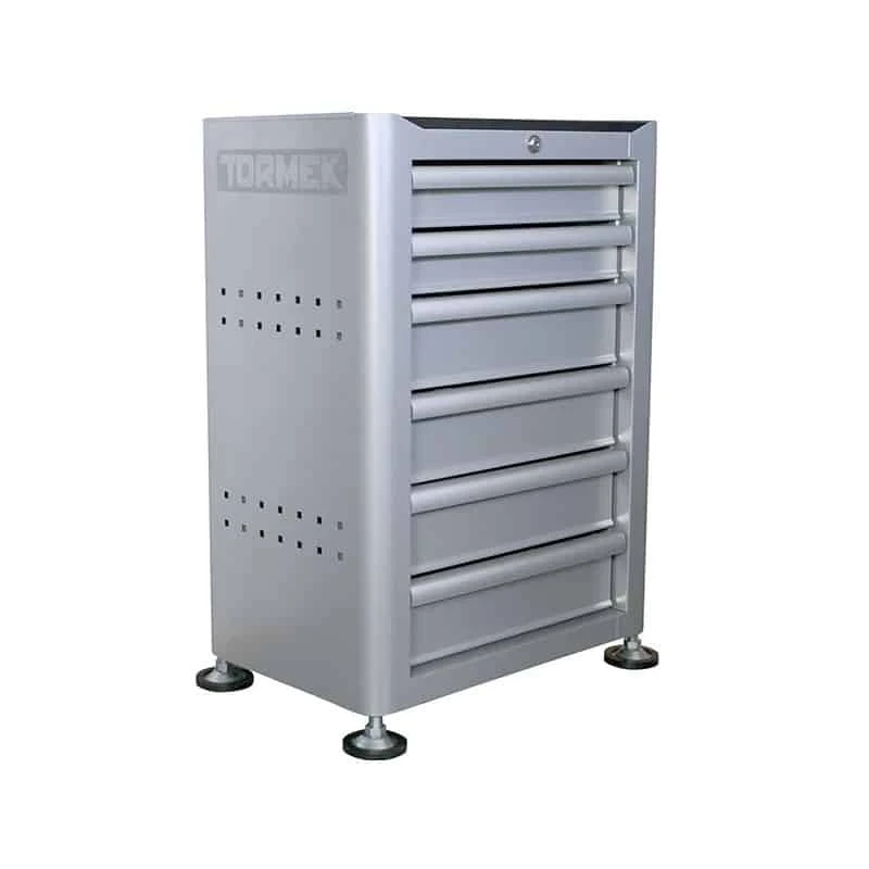 Fournis complets avec inserts Tormek, compartimentés pour recevoir tous les accessoires standard des machines, plus ceux des deux kits « Outils à main » et « Tourneur sur bois ». (Accessoires non- fournis). Trois tiroirs supplémentaires avec tapis caoutchouc très pratique. Elle contient deux tiroirs d’une hauteur de 6 cm et quatre tiroirs de hauteur 9,5 cm. Mécanismes de retour automatique des tiroirs pour une fermeture en douceur.
