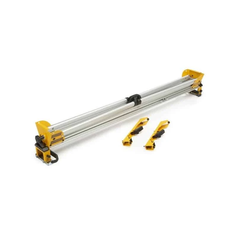Convient pour toutes les scies onglet Dewalt – Léger et facilement transportable grâce à sa construction en aluminium – Poutre de 1,70 mètres extensible jusqu’à 3,8 mètres permettant de supporter des pièces extrêment longues – La poutre peut supporter jusqu’à 182 kg de charge, ce qui la rend très polyvalente –