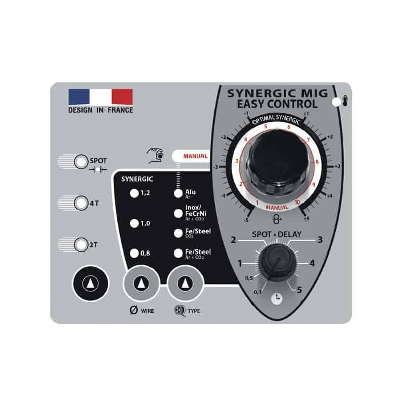 En mode « Synergique », son réglage est simple et rapide. Contrôlé par microprocesseur, le poste définit par défaut la vitesse de fil idéale. Il supprime les réglages fastidieux et optimise les