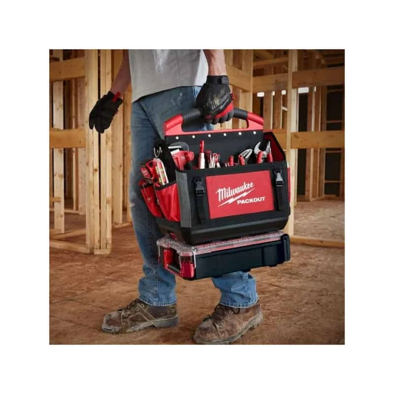 Conçu avec une base moulée extrêmement résistante aux chocs, le sac à outils PACKOUT Milwaukee permet de transporter facilement tous les outils dont vous pourriez avoir besoin sur vos chantiers.