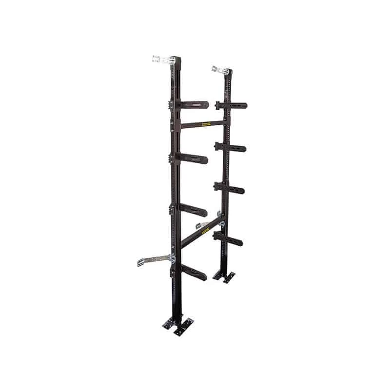 Barres télescopiques en métal, testées au crash test, avec ajustement en hauteur pour s’adapter à tout type de van.