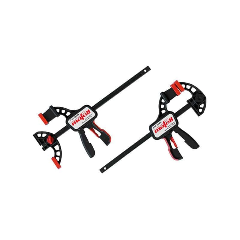 Les pinces de serrage rapide F-SZ de Mafell (vendues par paire) permettent de fixer les rails de guidage sur des pièces d’une épaisseur maximale de 180 mm (7 « ).