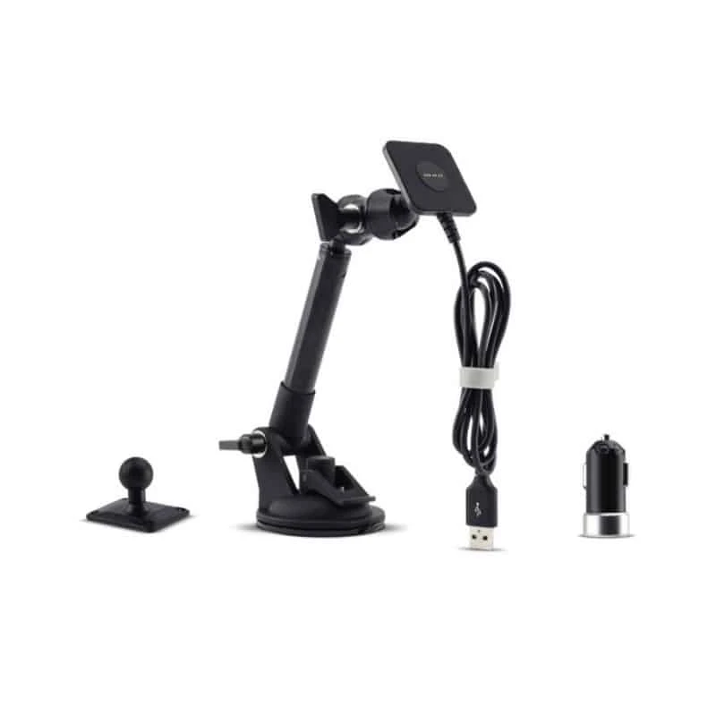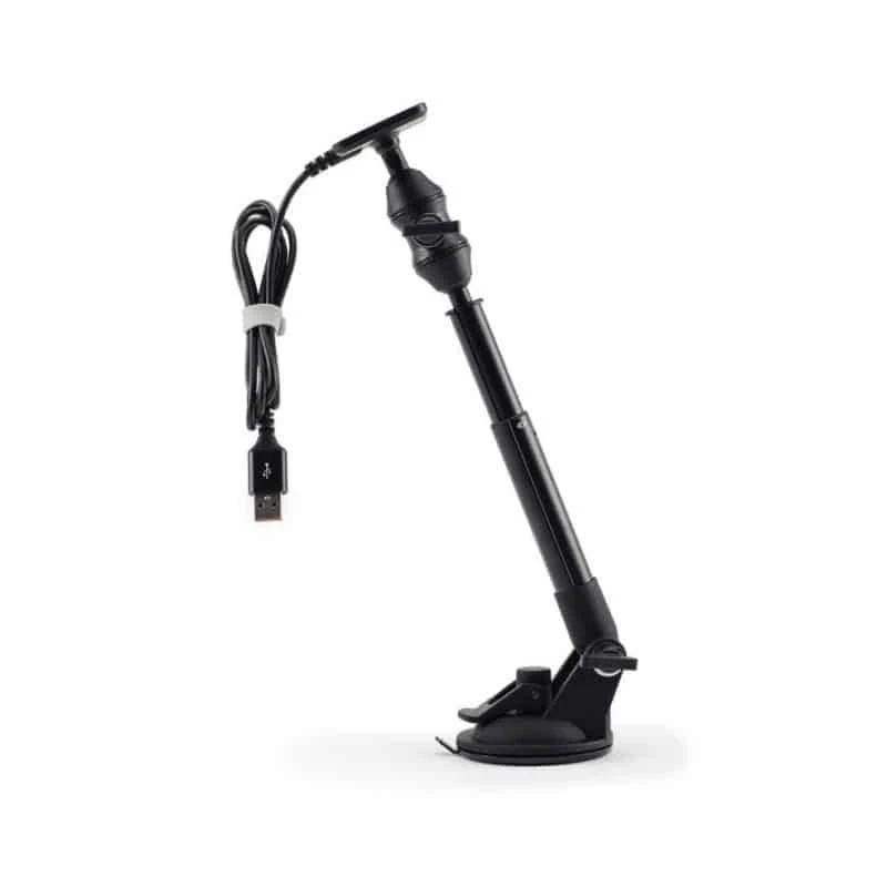Doté d’une double rotule, le X-CAR PRO se règle facilement à l’aide d’une seule vis, afin de proposer le meilleur angle d’utilisation. Le support ventouse est doté d’un bras extensible renforcé de 80mm à 130mm qui offre une lecture optimale de l’écran lorsque vous suivez par exemple les indications d’un GPS. Une attache en plastique est également présente sur le câble afin d’éviter sa présence au milieu de votre poste de conduite et vous permettre de vous déplacer en tout confort.