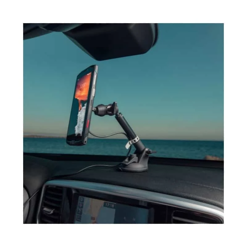 Compatible avec la tablette et tous les smartphones Crosscall dotés de la technologie X-LINK, le kit de fixation et de charge X-CAR PRO s’installe dans la voiture pour recharger facilement et rapidement votre téléphone ou votre tablette pendant vos trajets.