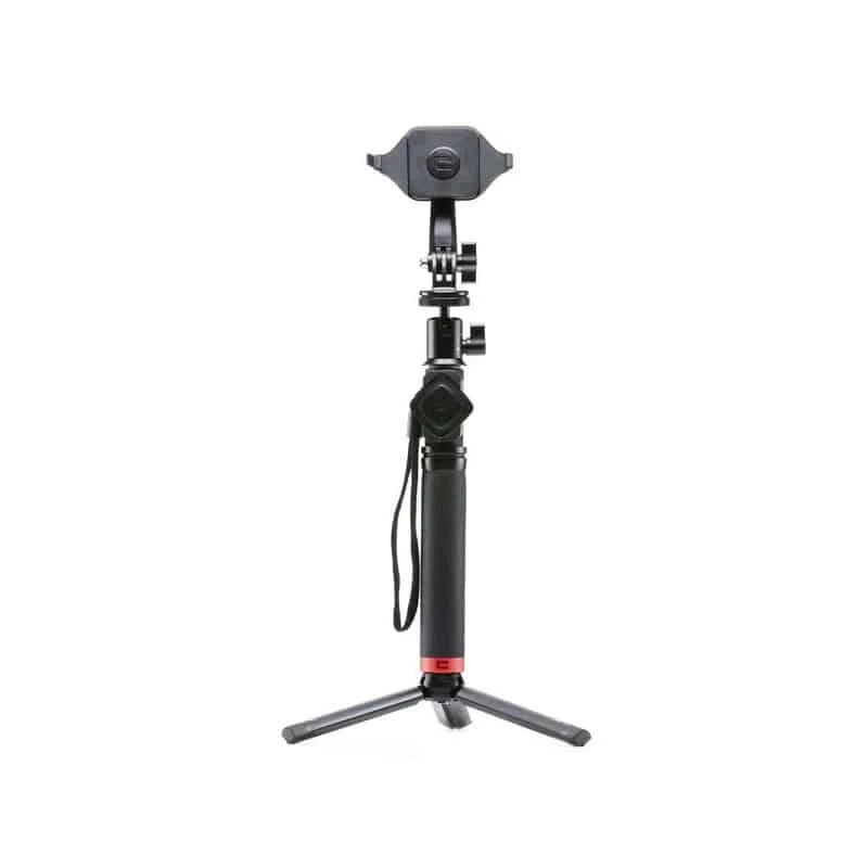 Le trépied permet de réaliser des photos stabilisées, des time-lapse ou des prises de vue avec davantage de recul. Ses finitions antidérapantes lui assurent un bon maintien. Il est amovible par un système de vis sans outils et peut également servir de rallonge une fois replié.